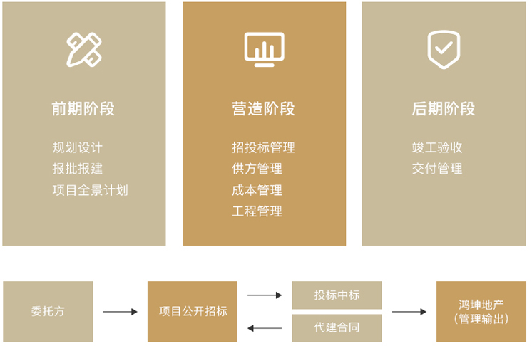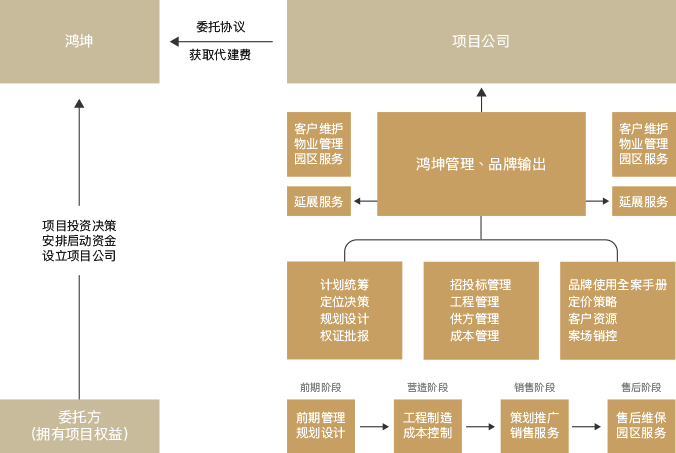 代建代管是基于鴻坤品牌價(jià)值、產(chǎn)品開(kāi)發(fā)建設(shè)及管理運(yùn)營(yíng)等優(yōu)勢(shì),為客戶(hù)提供涵蓋土地獲取、產(chǎn)品設(shè)計(jì)、工程營(yíng)造、營(yíng)銷(xiāo)管理、物業(yè)管理等全流程的委托開(kāi)發(fā)建設(shè)及運(yùn)營(yíng)管理解決方案